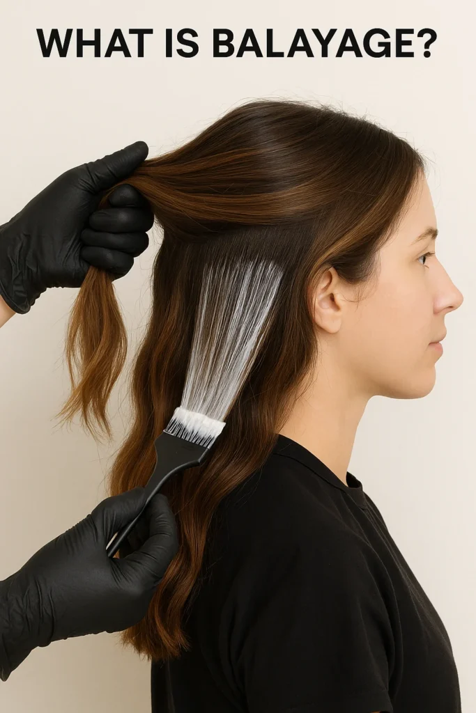 Balayage (pronounced bah-lee-ahzh) is a French hair coloring technique where the stylist hand-paints the lightener onto the hair in a free-form, sweeping motion. This method creates a natural, sun-kissed look that blends beautifully with your base color.